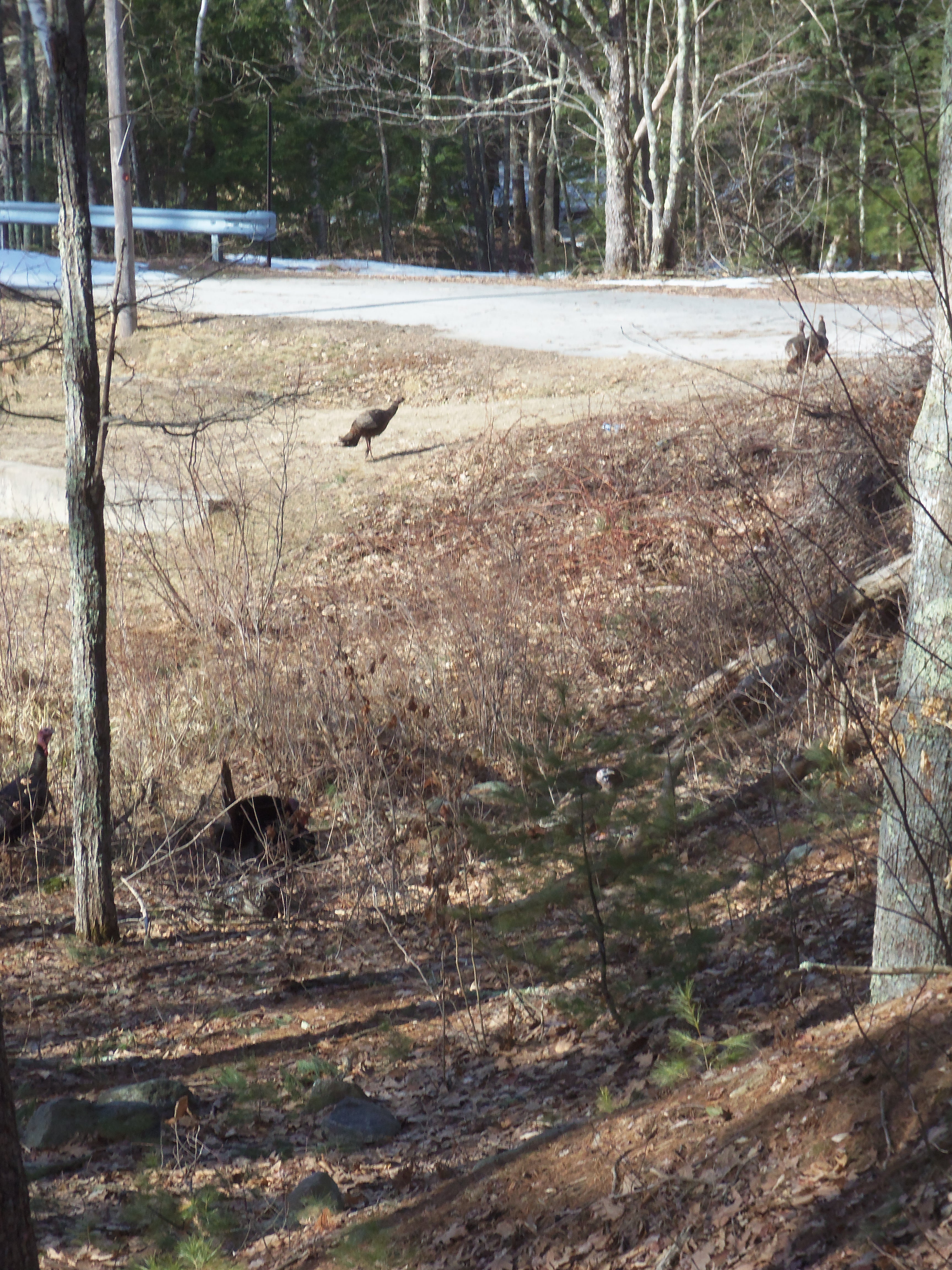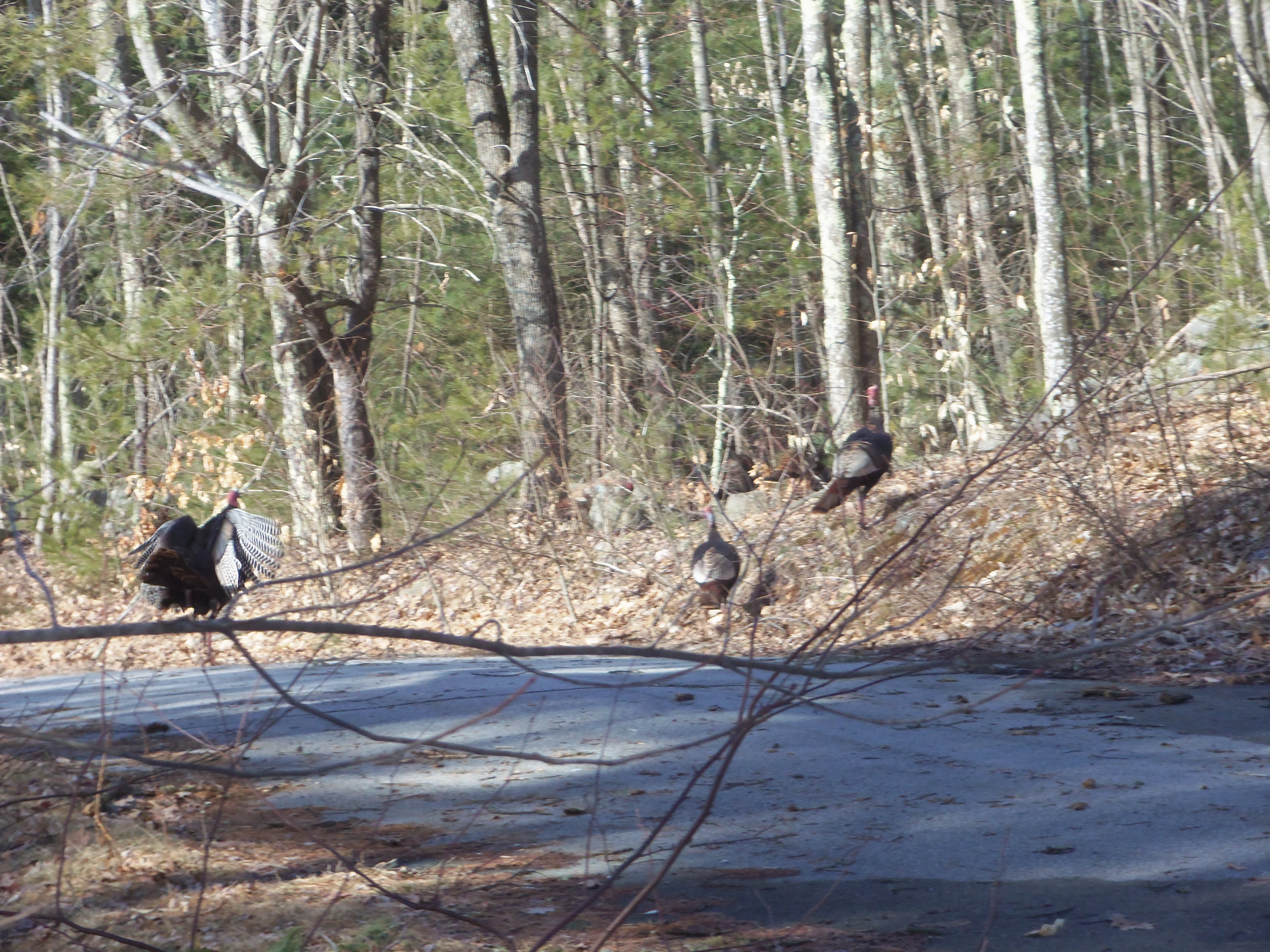 Wild turkeys have made a remarkable comeback in New England. The other day, I had to stop behind a stopped car on the road. That’s when I saw the gobbler stroll off the pavement. There was even one in our yard, we’ve been told.