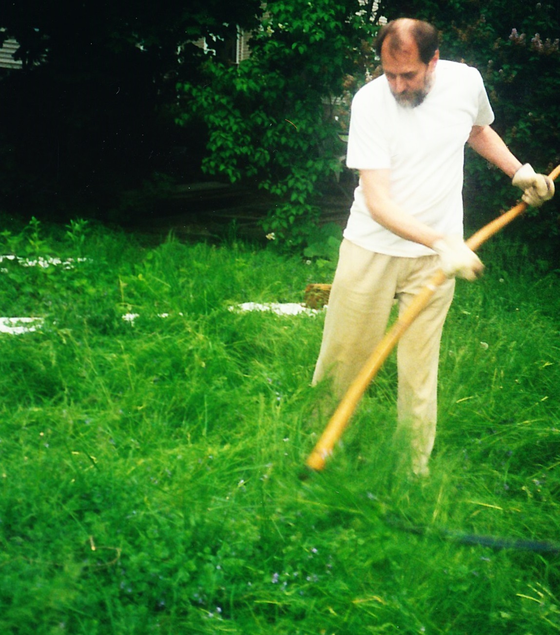 Swift cuts with the last third of the blade parallel to the ground. I use a scythe (and a sickles, too) quite a bit to cut fresh grass and clover for my sheep. Don’t think I’d like mowing the lawn with one though. I’m very happy to use a lawnmower then.
