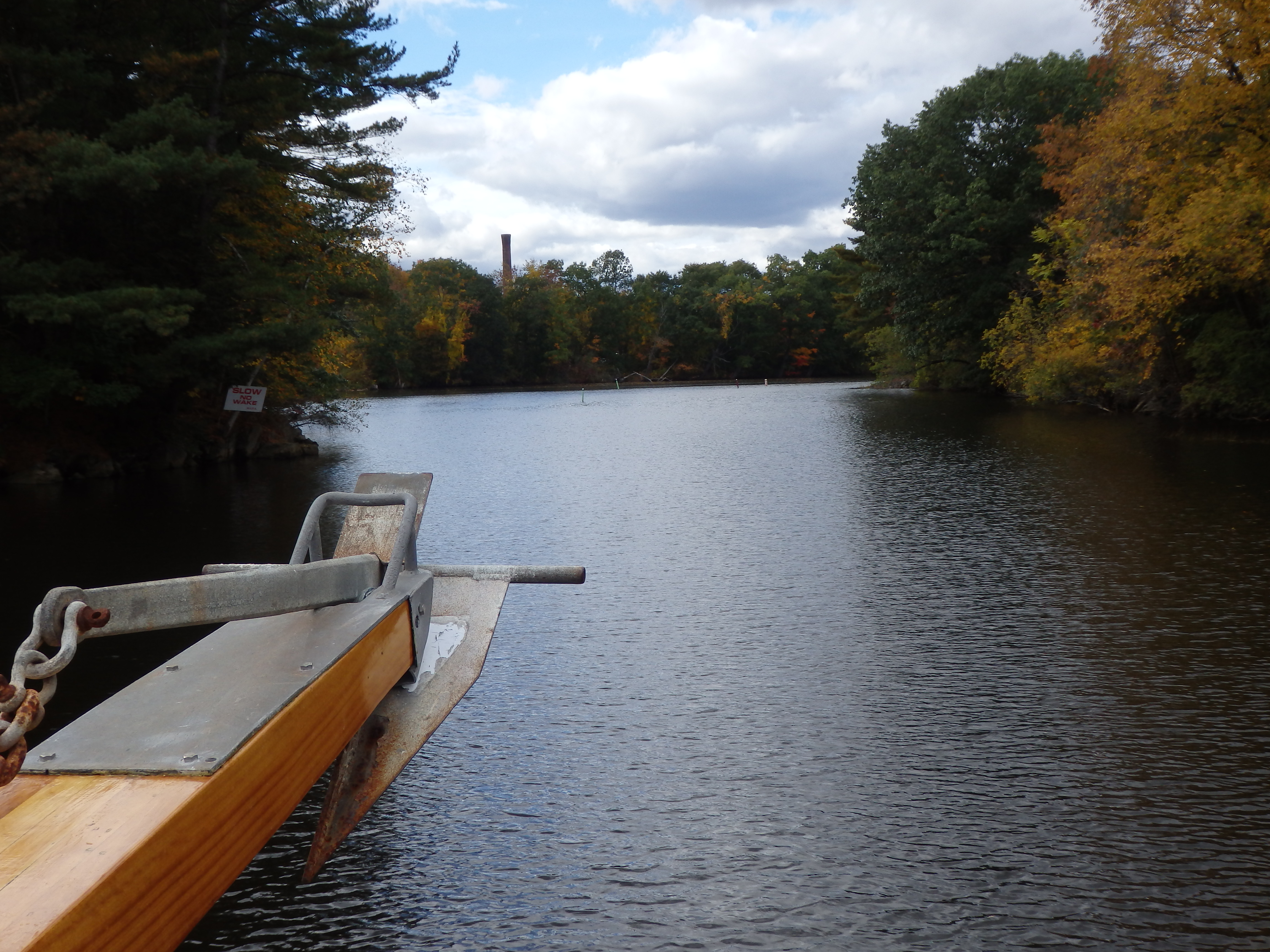 At one broad pool, we were told that tall-mast ships turned around here before reaching the mills by being poled by hand on high tide or pulled by oxen the final few miles. And, at the upper narrows, we appreciated a friend’s work with the Army Corps of Engineers in dredging power-plant tar from the river to reopen the passage. (That could be another posting in its own right.)