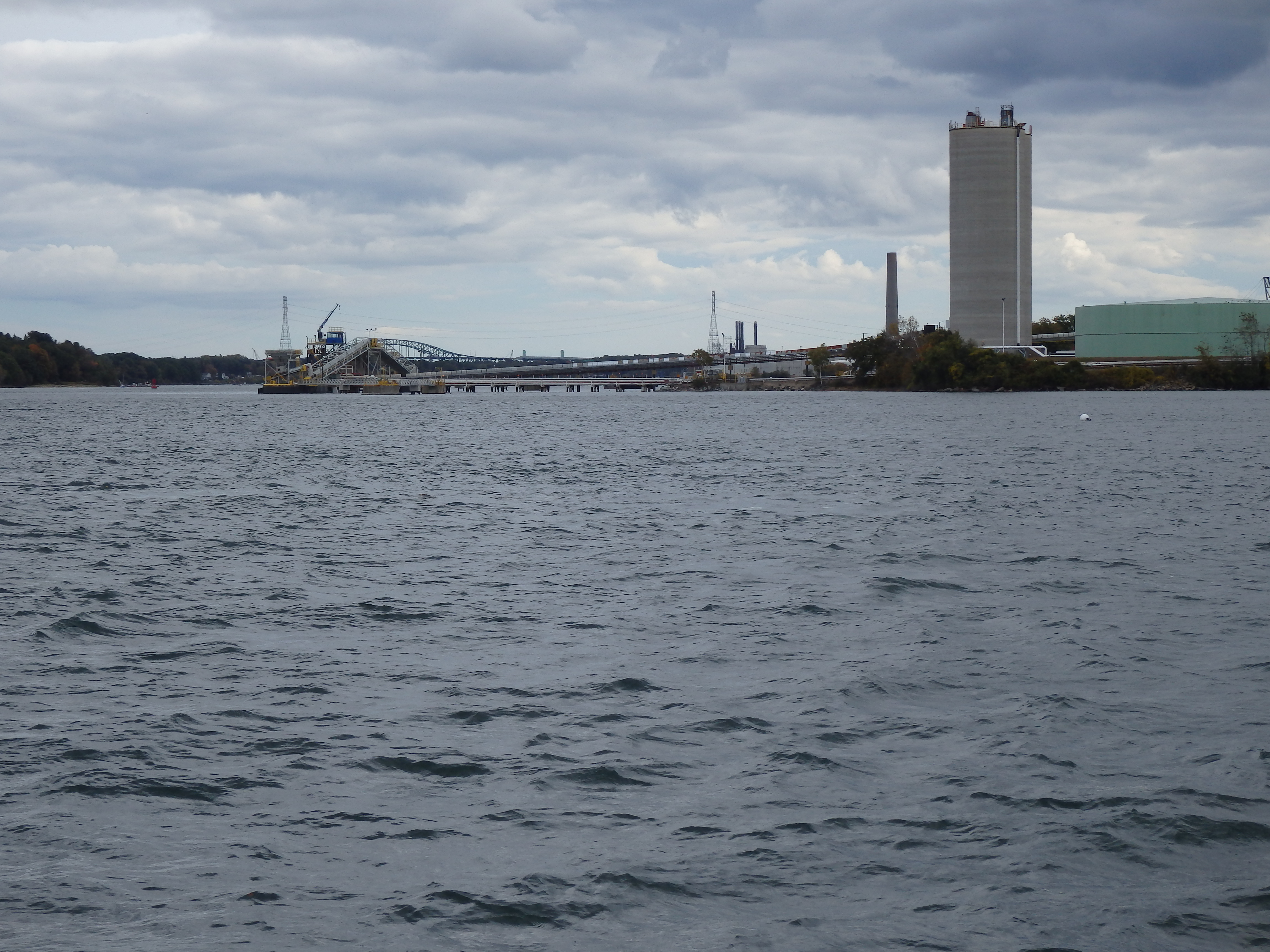 It was an eye-opener. Once we left the familiar, picturesque Colonial-era Portsmouth Harbor, we began passing all of New Hampshire’s industrial waterfront, which includes three electrical power plants, the world’s largest lobster operation, an oceanic underwater cable producer, oil tank farms, and the like – each with major docking facilities for oceanic freighters or other vessels. I hadn’t envisioned the extent of this activity. Nor had we anticipated the width of the passageway, in many places approaching three-quarters of a mile. Not what most folks would call beautiful, but it was impressive, even if we were grateful Aristotle Onassis failed in his attempt to put an oil refinery a bit upstream.