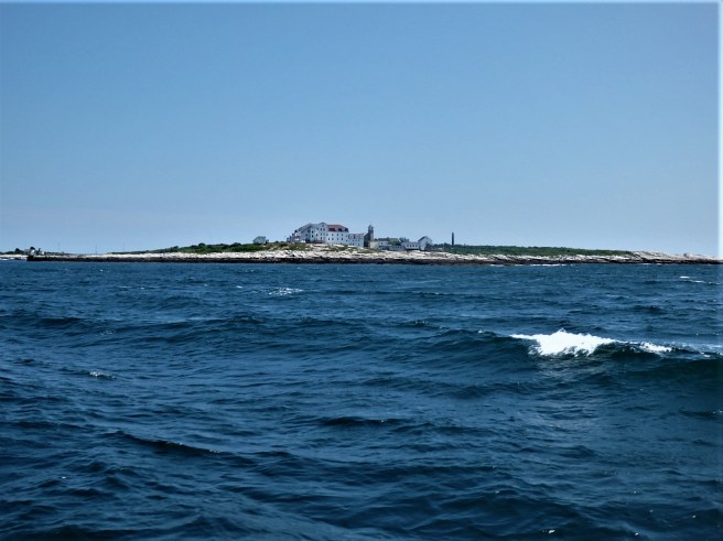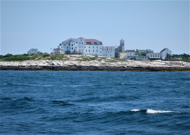 Regular service. This one’s returning to Portsmouth. Appledore Island rises to the left, while Star Island is just to the left of the ferryboat.
