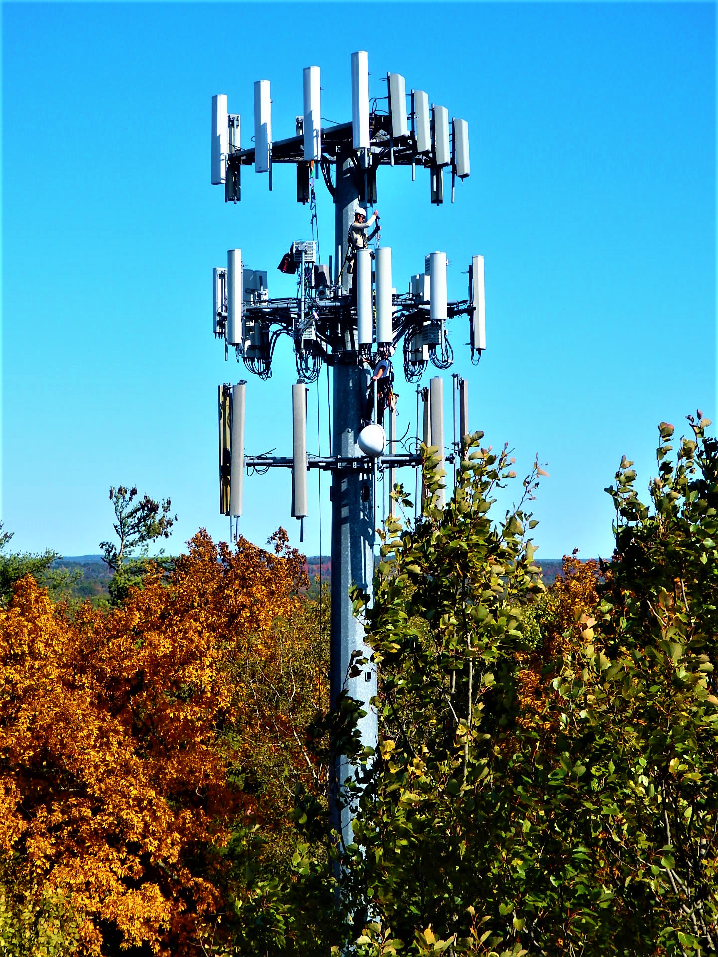 Cell phone towers have become an ubiquitous part of the American landscape. This is one of three atop Dover’s Garrison Hill, and the panels also ring the giant smokestack at the mills downtown.