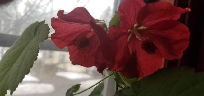 Let’s hear it for flowering indoor shrubs! Note the snow on the other side of the window. (Photo by Rachel A. Williams)