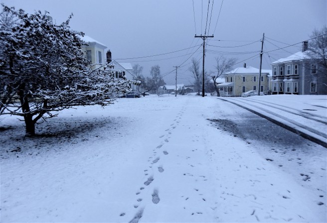 It did get us in the holiday spirit. We even trekked down to the crafts fair at the arts center, which had a two-hour delay, and then had hot mulled cider at the brew pub overlooking the harbor. We’re expecting more overnight and into tomorrow.