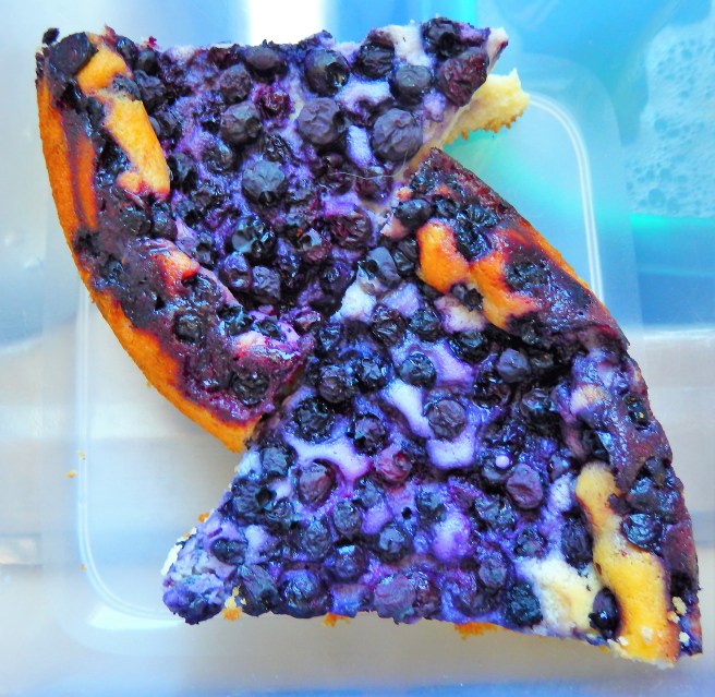 Here are a couple of the last slices from a blueberry breakfast cake my wife created.