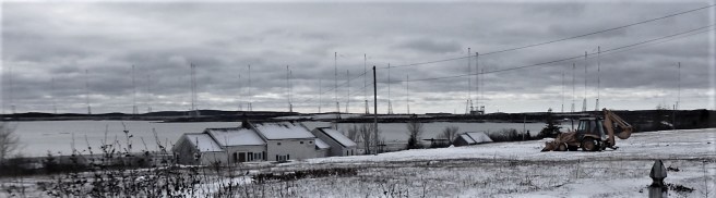 The U.S. Navy’s communications center in Cutler has 27 radio towers.They communicate with vessels anywhere in the Atlantic as well as the Mediterranean, including submarines.The low-frequency signals originate in a two-million watt transmitter in the building at center.