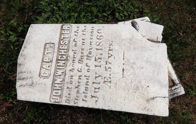 Many of the names begin with “Capt.,” sometimes followed with “lost at sea,” which is also found on other stones of first mates or sailors. Others tell of falling in Civil War action – many New England towns suffered heavy tolls.