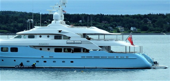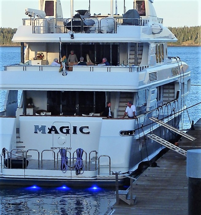 Each summer, a few superyachts make their way from the Bay of Fundy into Eastport and tie up for a night or two at the Breakwater pier downtown. They usually draw an envious gaggle, as well as pure curiosity and gossip.