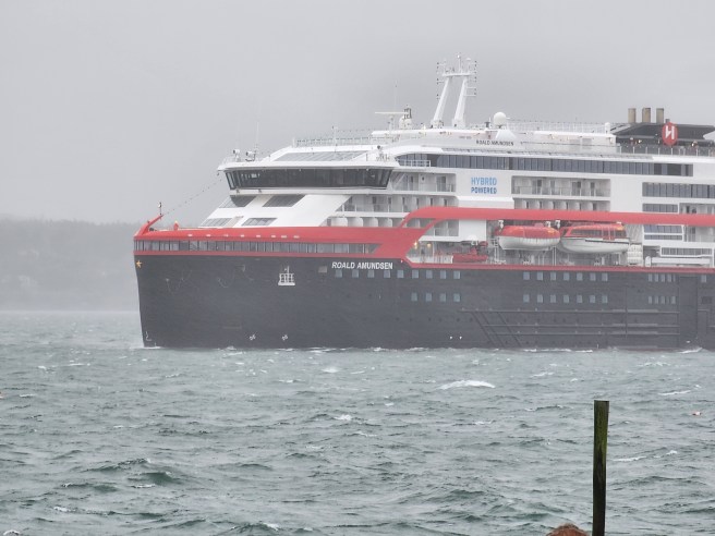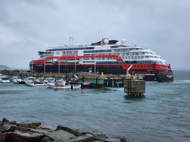 It’s a very blustery day. But welcome to the East Coast of the USA. The expedition cruise ship did arrive, on schedule, as promised.