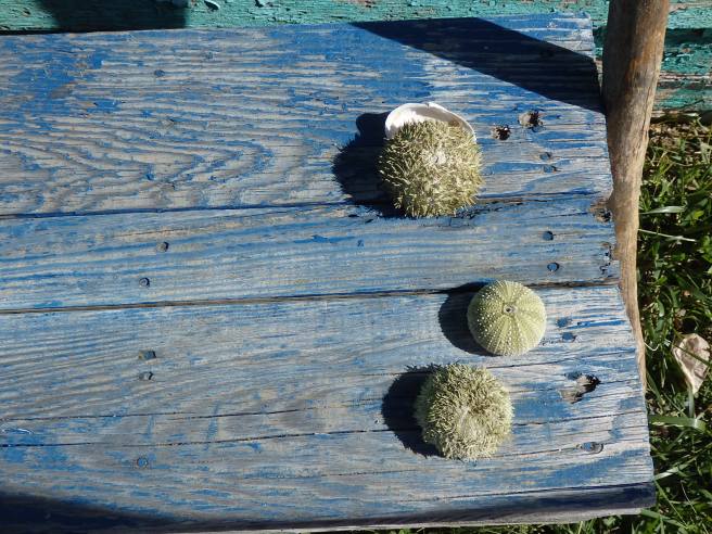 Urchins on a blue bench September 27, 2022August 26, 2022 ~ Jnana Hodson Not how they look in the water. Share this: Click to share on X (Opens in new window) X Click to share on Facebook (Opens in new window) Facebook Like Loading... Related Published by Jnana Hodson In downsizing to a remote fishing village in Downeast Maine, this eclectic writer feels everything's coming together. View all posts by Jnana Hodson