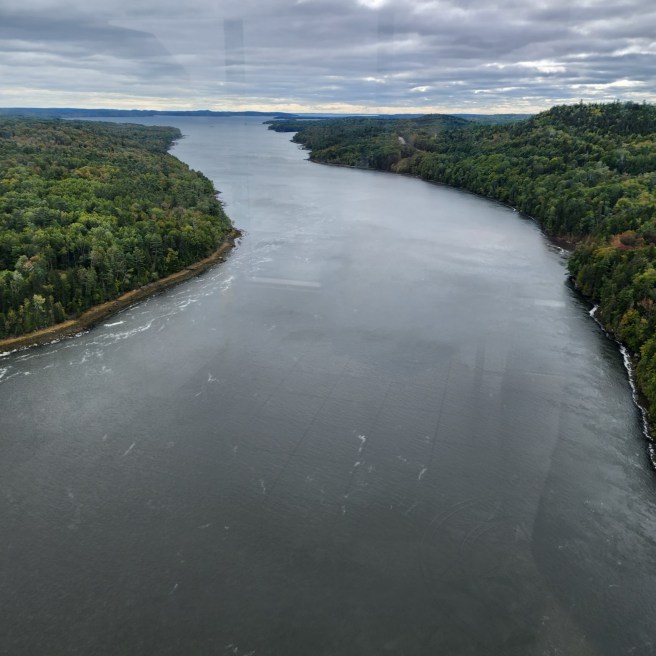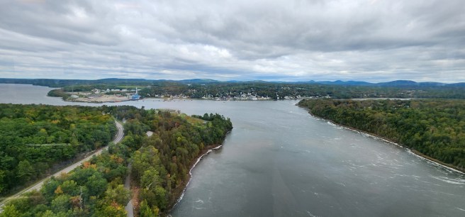 Here’s how the Penobscot Narrows look from the observatory atop the Fort Knox bridge: