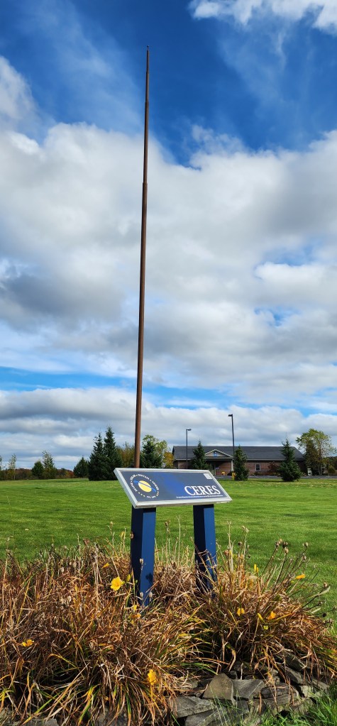 At 3/8 of an inch in the scaled solar system – that is, a steel ball bearing – this is the largest object in an asteroid belt between Mars and Jupiter.