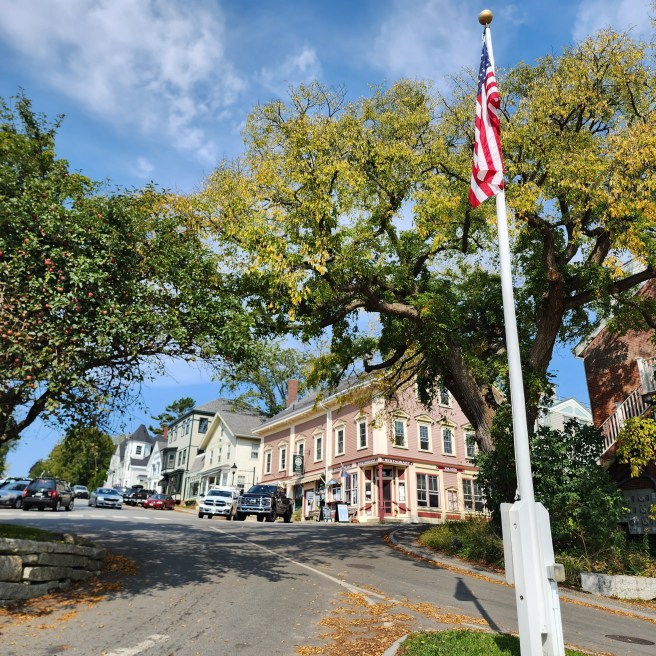 The Castine development at hand arose while killing time between the Common Ground Fair in Unity, Maine, and my setting sail a day later. Or, more accurately, boarding ship with a buddy from Vermont for our first overnight in the vessel before casting off and hoisting the sails the next morning. Literally. Peter joined up with us for a night at the Airbnb before he and I ventured off together. That left us with a day to fill. On a whim, I suggested a land excursion as an alternative to the Farnsworth American art gallery or the transportation museum down the coast. Peter was game, and besides, he knew the town and accompanying waters.