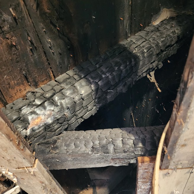 When we were considering making an offer on the house, we were told to check out the rafters for signs of charring, a consequence of the 1886 fire that destroyed the canneries, wharves, and downtown. Sure enough, ours was one of the homes suffering damage though left standing.