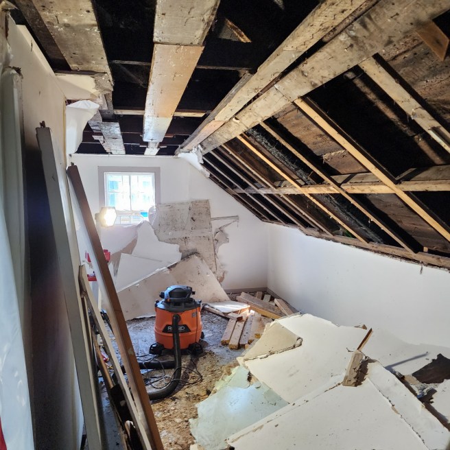 Do note, a lot of unsung artistry goes on in projects like this. As well as a lot of weird shit, done by rank amateurs, those whose weird decisions you discover along the way. Long ago, on projects on our little city farm back in Dover, we realized there are many, many very good reasons for modern building codes and for the inspectors who ensure they’re followed.
