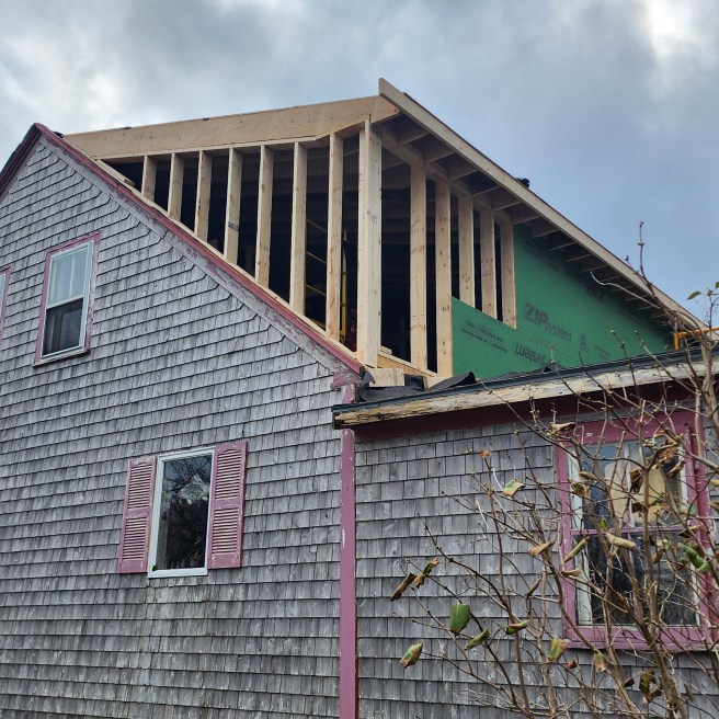 As an added blessing, Adam, our exacting contractor, was joined by Keith, a simpatico master carpenter (even mediocre ones are hard to find around here). Fortuitously, they melded into a relentless team that raised the back wall, crafted new rafters, and encased the roof like clockwork.