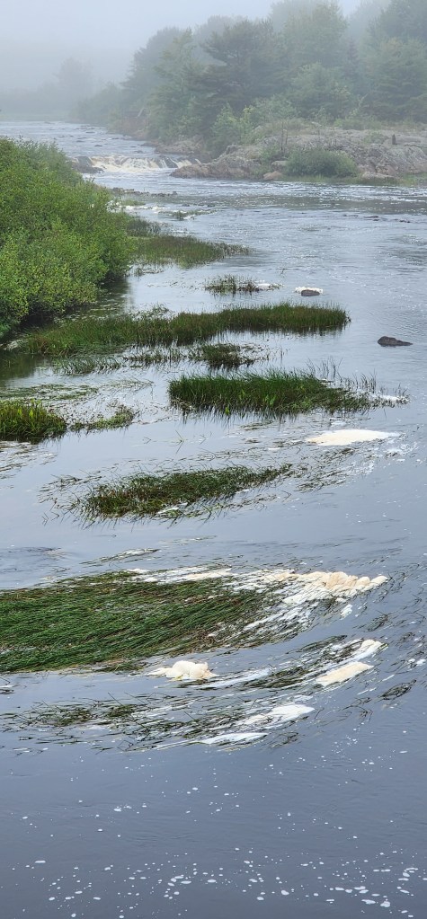 The 75-mile-long Machias River is Maine’s leading salmon habitat and was a major lumbering stream. There is little settlement or paved-road access upstream from here, the bridge in Whitneyville.