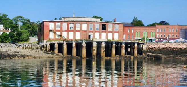 The legs of the former American Can Company factory on the Eastport waterfront are revealed at low tide if you’re out on the water. To see what’s behind them, go to my photo album, Can Factory Caverns, at Thistle Finch editions.