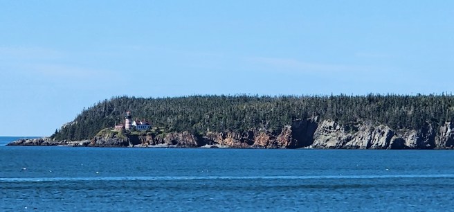 The distinctive peppermint-stick tower of the West Quoddy lighthouse is viewed from the tip of Roosevelt-Campobello International Park in New Brunswick, Canada. You’re looking at the easternmost point in the continental United States.