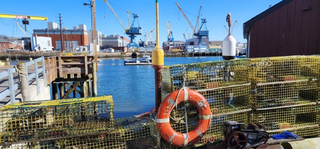 The historic boatyard, now a booming submarine maintenance facility, is situated on an island across the Piscataqua River from New Hampshire’s Seacoast city of Portsmouth. It’s seen here from Kittery Foreside, the town with the military base gates.