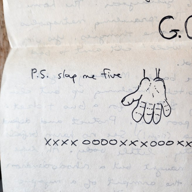 Friday, Judith was here, I called the neighbors to turn it down, “I’ve got a biddie here and she’s trying to study,” “a what?,” “I said biddie,” and she attacked my bare back with a magic marker and I started laughing and Tim on the phone started laughing, couldn’t stop, any of us