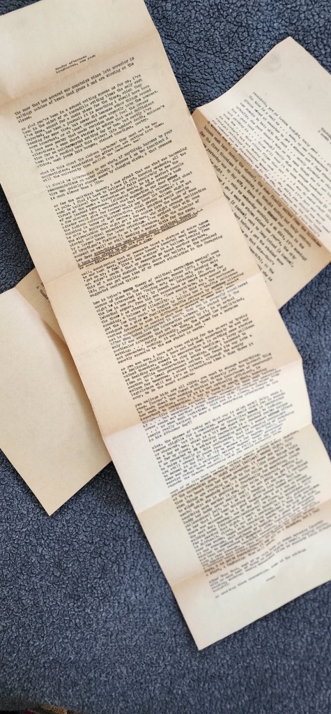 As for my typing, a la Kerouac, on long strips of teletype paper, which I had in abundance from the newsroom. It served me for both correspondence and my own drafts at literature.
