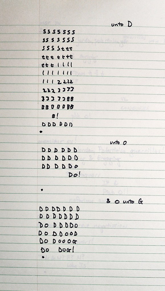Pages of teletype snafus, many becoming my Sun Spots series of concrete poems.