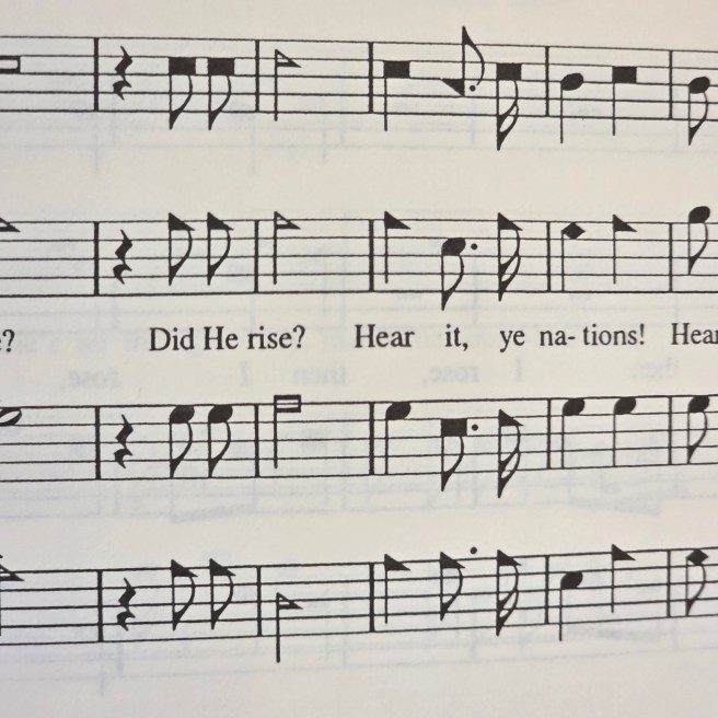 Music written with distinctive shapes for each pitch became a way of training American amateurs to sing harmony in a choir. Fa-so-la plus mi, rather than do-re-mi, for starters. Known as shape-note singing, it led to a distinctive style of hymn performance called Sacred Harp, especially popular in the South. Here’s a bit from the Easter Anthem by colonial New England composer and tanner William Billings. I learned the piece with Mennonites and can attest that shape notes can be so much fun.