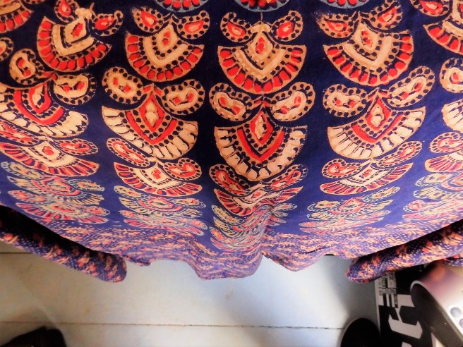 This fabric has been covering our washer and dryer most of the time in what’s become a multiuse room. Sometimes these accidental shots reveal glimpses into how I live.