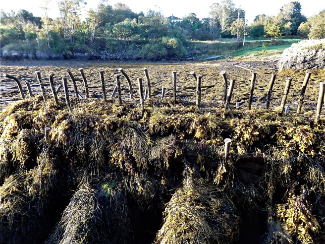 The keel is all that’s left of the four-masted schooner “Dorothy.” It makes a puzzling figure in the waters of Shackford Cove, regardless of the tide. I had supposed it might have been a section of a rail track used at one of the four shipyards that once lined the shore. On a really low tide, this is how it looks up-close.