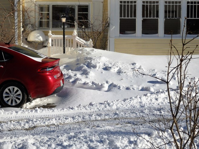 So far, according to the weather service, we’ve had about 48 inches so far this season, but this last storm was the doozy, as you can see from our digging out. But, wait, there’s more, as the cliche goes. Tomorrow and the day after are expected to deliver another foot or so, the figures are still bouncing around. Dial up, scale back. Yeah, folks around here are skeptical of the forecasts, for good reason, but not stupid, either.