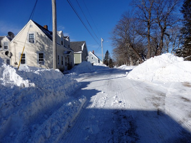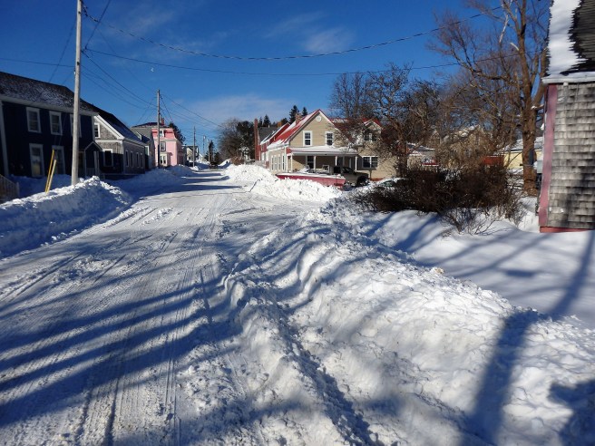 We were also hit with a widespread electrical outage, which fortunately was repaired in about only an hour or a bit more. I was braced for two or three before getting worried. Oh, I do miss having a wood-fired stove, though one is in our plans. And we do have a generator on order, one that would have been in by now if only we weren’t trying to relocate its proposed placement to allow for a tiny future full-sunlight garden, which is, in fact, now buried by the snow plow driver. Life gets complicated.