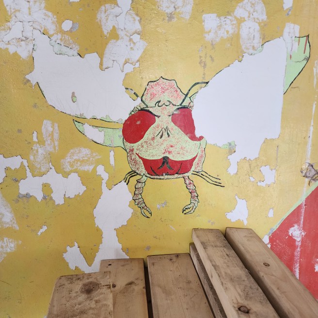 I originally thought they were from the Red Ranch, a reflection of the Yankee frugality that recycles forever, if it can. Do note that no paint was squandered covering the lettering, since it was facing the wall anyway. Or was it intended for future history, the way a time capsule is?