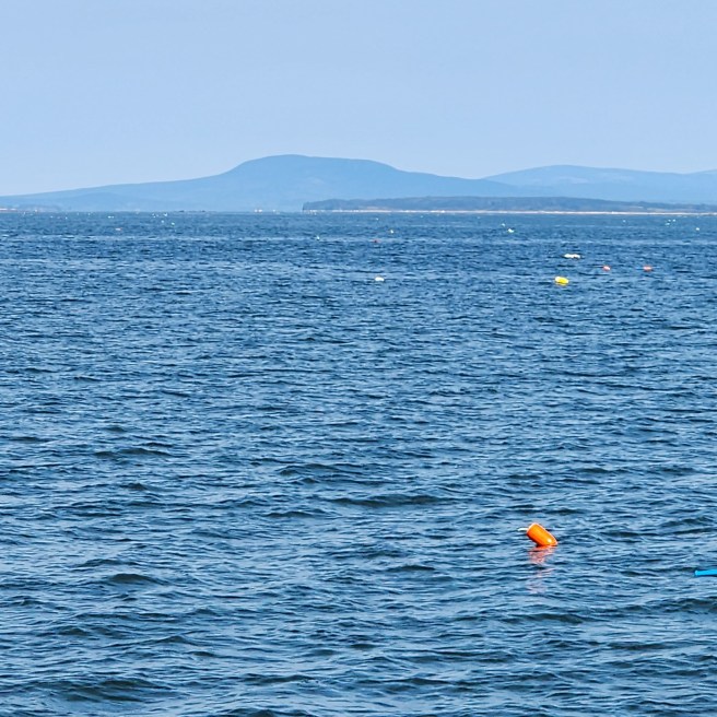 people bundled up this morning muted sun water depth 64