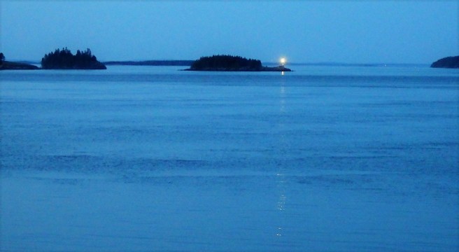 Except on overcast or stormy mornings, the early light of day in Eastport is amazing. Campobello Island in Canada blocks the first rays of the rising sun from striking us directly. Instead, the beam is deflected from the ocean into the air to become an ethereal rosy radiance, sometimes against a dark bank of clouds hovering off over the neighboring Fundy islands. And then, with that doubly-illuminated sky mirrored in the two-mile-wide channel separating Eastport from Campobello, the overhead color spreads out below as well.