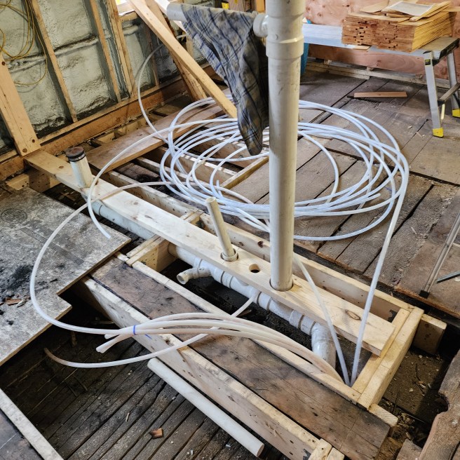 The plumber, meanwhile, has been off in Indiana supervising the piping installation in a new lithium factory. He’s back in town and promises to be on our project next week, to our big relief.