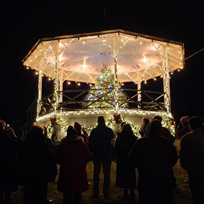 The gathering celebrates the completion of the downtown’s public holiday lighting. The volunteers are duly applauded.