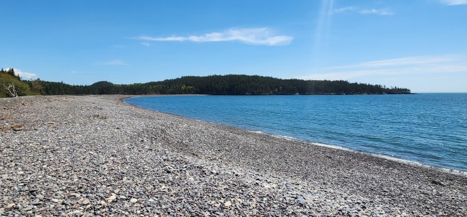 This cobble dune is much taller than you expect, and it is a natural wonder. In this photo, the sitting sunbather looks like one more small stone. Welcome to Jasper Beach in Machiasport, Maine.